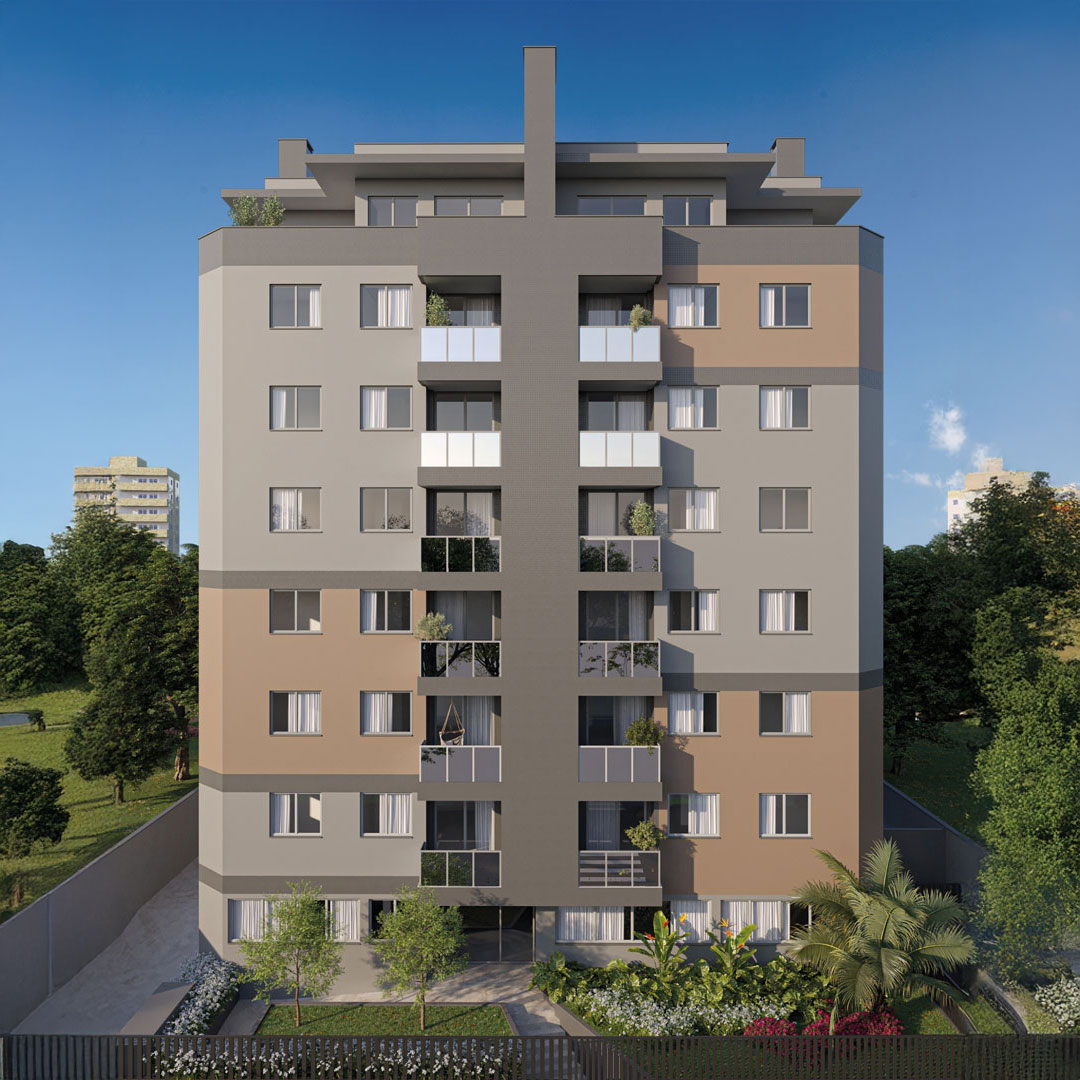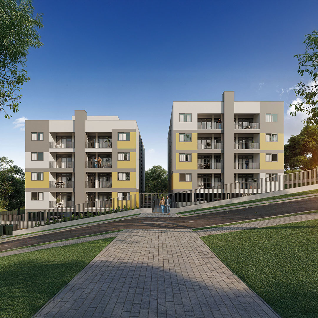 • Apartamentos de 71m², de área privativa, com dois dormitórios, um sendo suíte, uma vaga de garagem.